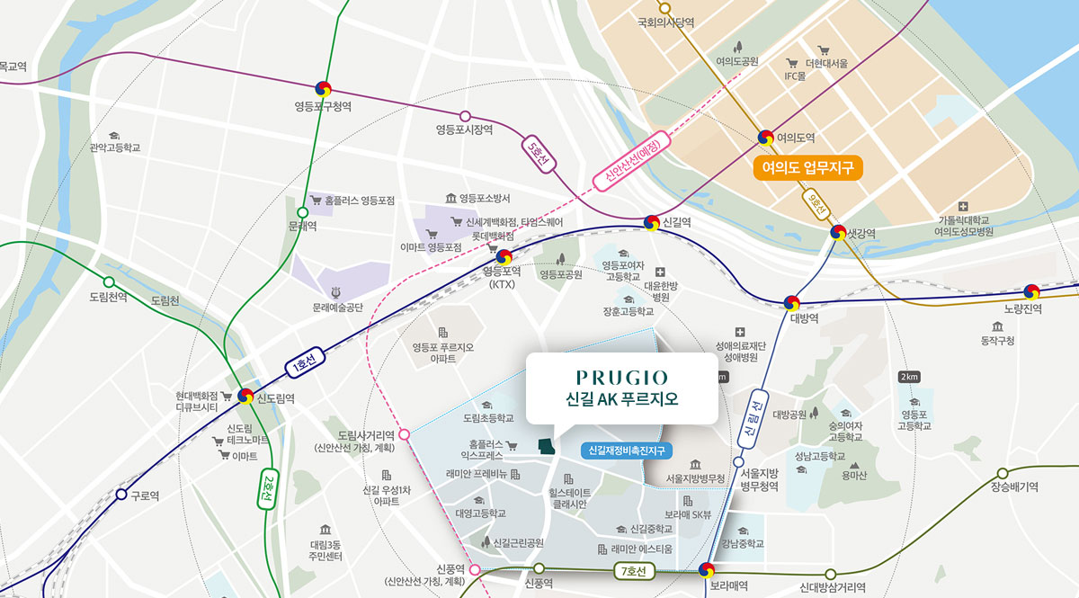 “신길AK푸르지오아파트는 서울 영등포구 신길뉴타운 내에 위치하고 여의도 10분 거리로 교통과 생활편의시설이 가까운 핵심 입지의 주거단지입니다.”